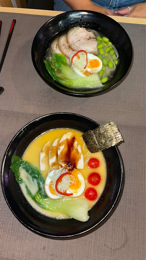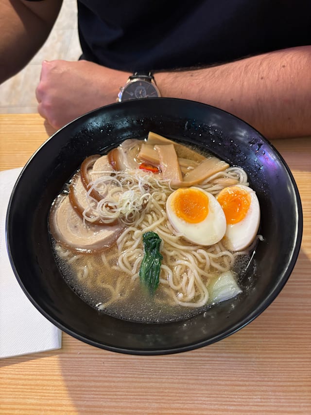 4/10I don’t know if it was a problem of the day (because we’ve been to another branch and it was fine), but all three ramens we ordered had the broth too fatty. So fatty that they made us feel sick and we couldn’t finish the food. Also, they have no baby high chair, and all their chairs are backless (stools). The dining space is very small. Service was average.