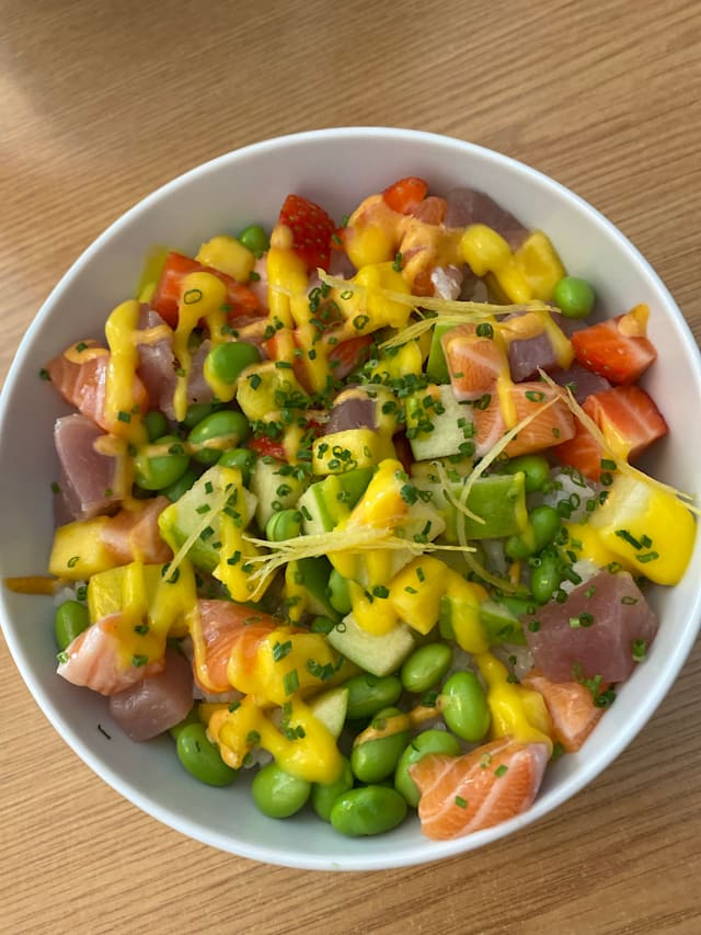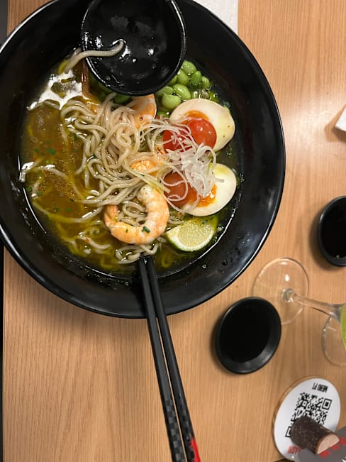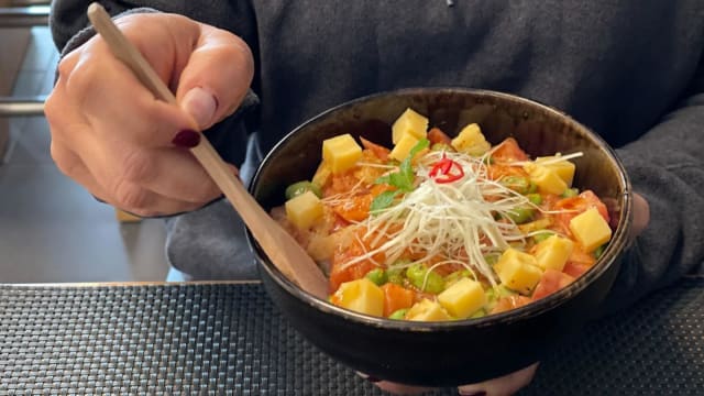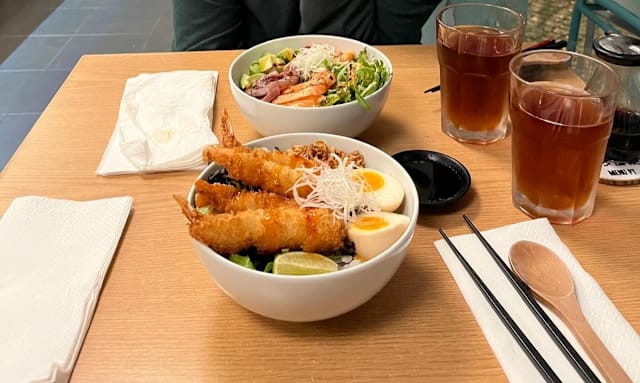 7/10The name of the place is really misleading as they rather serve poke bowls (rather than the traditional chirashi) and ramen. The rice is good but the fish and salad were too sweet. Quantity is ok. The place is quiet and decorated as a street food joint: teh wooden stools are less comfortable than real chairs.