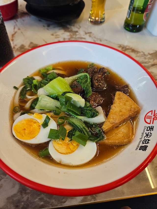 - Noodles picante e avinagrado com ovo cozido e dou-gan