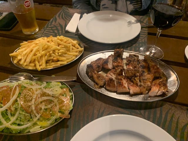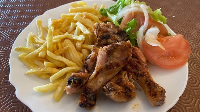 10/10Booked into this restaurant and we were not disappointed, friendly service and amazing food. The menu is limited to chicken but they do this really well. We had the Portuguese sausage to start with some bread which was amazing. Then the main dish of half a chicken and chips. Chicken was full of flavour and the chips hot and tasty. A really good meal highly recommended. People were coming in and out for take out orders too so it’s clearly well known. A great place.