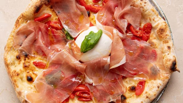 Fiordilatte, prosciutto cotto, pomodoro datterino rosso, grana padano, olio evo
