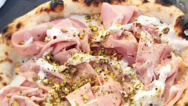 Mozzarella fior di latte, mortadella IGP bologna, stracciatella, granella di pistacchio