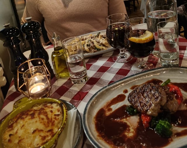 9.5/10Excellent food! We had scampi for starters (big ones and a large portion for being a starter) and then Lasagna and Beef and mushroom rigatoni for mains. Staff were really attentive and came with more cold water during the whole meal without being prompted. Good value for money. Recommended!