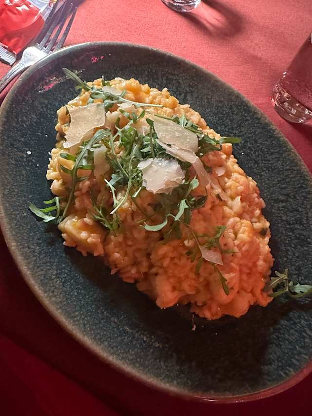 - Risotto med grillad rödräka, blåmusslor, räkor, vitlök, peperoncino, tomat, bladpersilja och vitt vin.