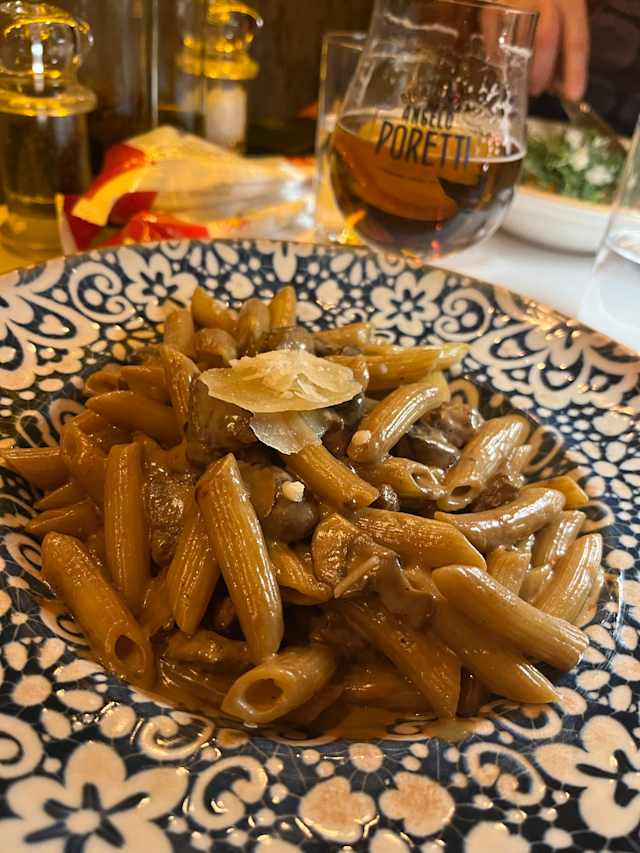 - Rigatoni pasta med salsiccia-korv, grädde skogschampinjoner och vitlök