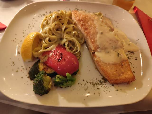 - Grillad laxfilé med blandsallad,gurka, tomat, ruccola och krutonger,caesardressing och parmesanost.