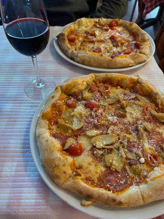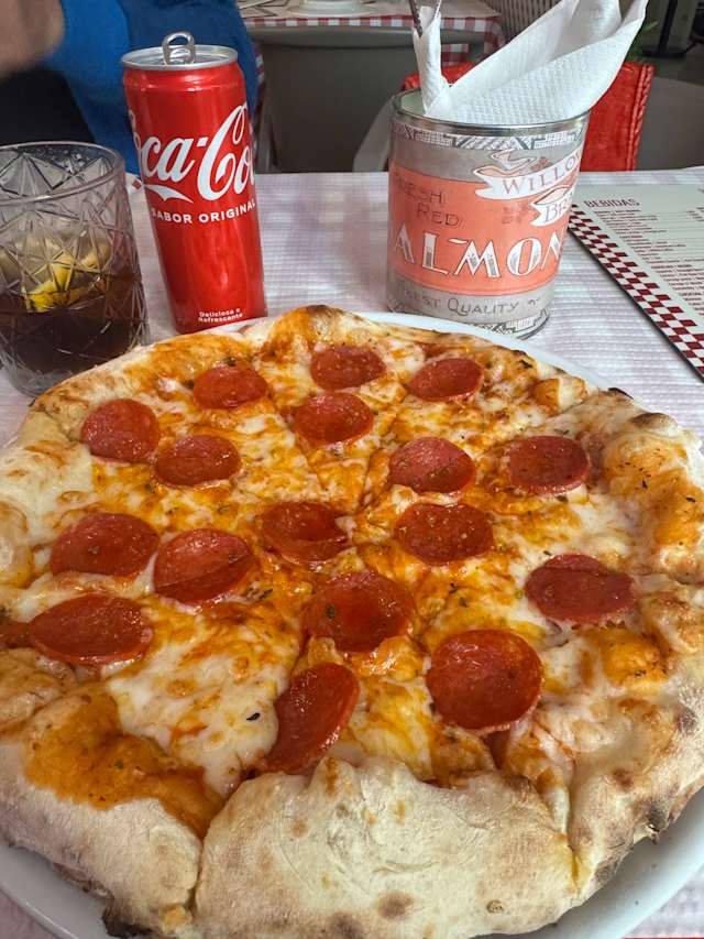 - Frango, tomate cherry, rúcula, bacon, parmesão