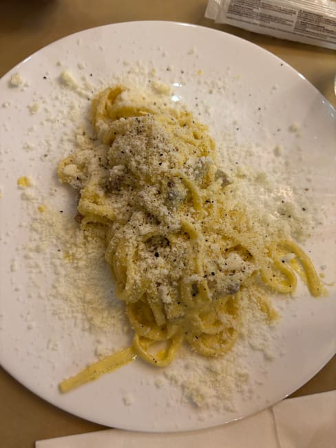 9/10Best carbonara I have ever had. Panecotta was also absolutely delicious. Lovely staff. A very nice family feel to it and good value for money.