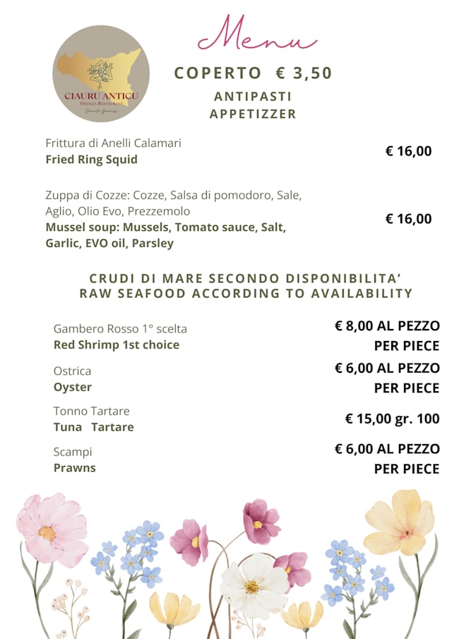 10/10+1Ciauru Anticu is our favourite restaurant. Daniel has created a superb menu, the food is exceptional. Front of house, Teresa gives the warmest welcome. Tonight will be our fifth visit and we look forward to returning to Ortigia and Ciauru Anticu. Thank you Daniel and Teresa.