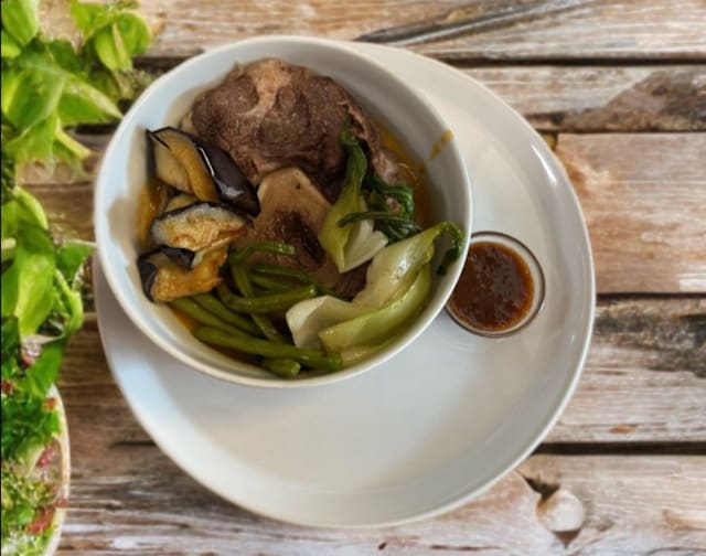 - Ossobuco di manzo tenero cotto alla perfezione, servito un ricco di brodo saporita con pannocchia, pakchoy e fagiolini. Un classico piatto comfort filippino.