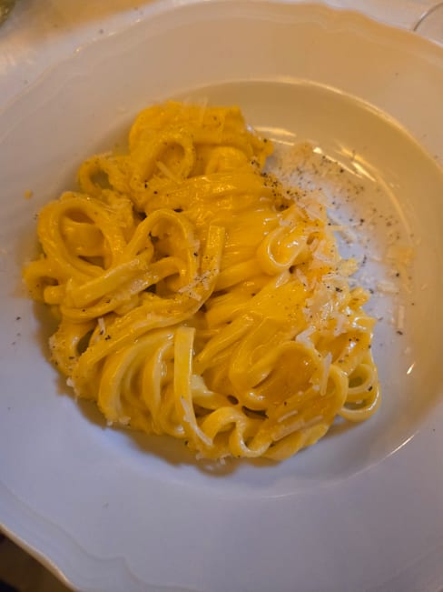 9.5/10Tagliolini was beyond excellent. It's a perfectly balanced dish that richly satisfies without ever tempting excess. Loved the bistro feel of the Caffe, and staff were very friendly and almost entirely bi or trilingual.