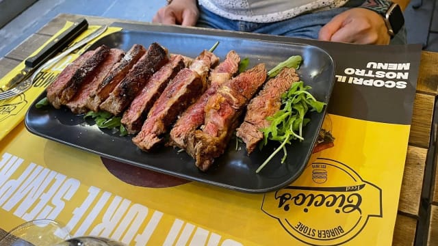 300g di manzo danese con rucola, sale pepe (servita con patate rustiche)
