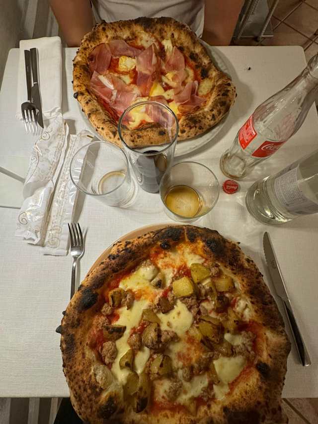 - Pomodoro, mozzarella fior di latte, salsiccia, patate al forno