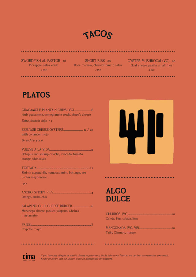 CIMA Rooftop Bar is identified as offering mexican cuisine.