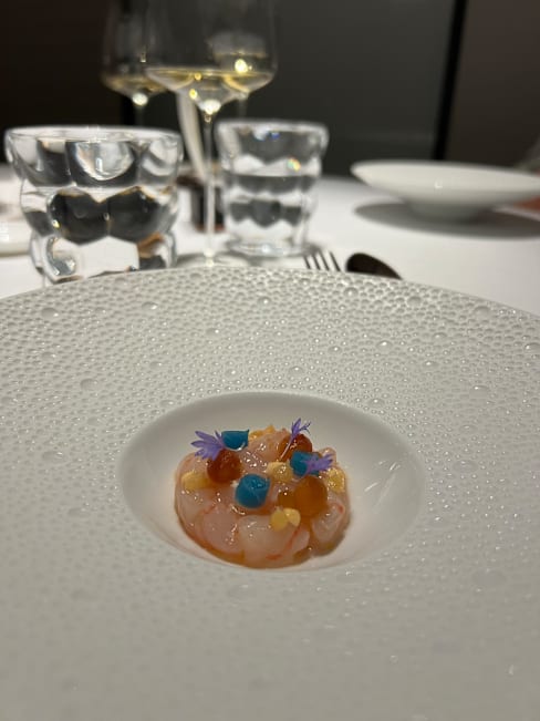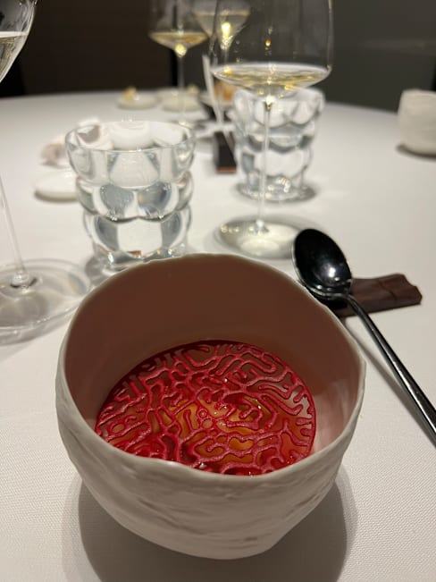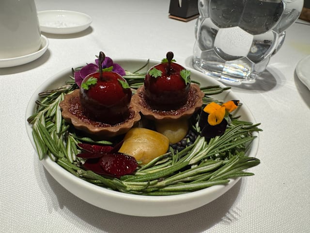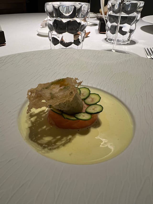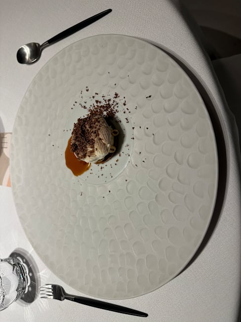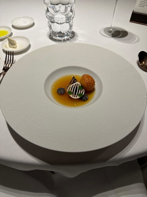 4.5/10The service overall was very lost. It looked like the sommelier was the only one competent and that was actually in charge of things, the other waiters were generally below standard (explanation, service, movements…). I had to ask many times for more water and more wine, which should not be the case with a 300€ bottle. The restaurant was not even full. I did not like that when arrived, you need to wait in front of the door and they let you in 1 party at a time. The lady at the “welcoming” LITTERLY closed the door in my face while she wa staking care of someone else. I thought surely a mistake and wrang the doorbell only to her dismissal. This is the contrary of welcoming attitude . I unfortunately had a time constraint and could not enjoy the full menu (I think this probably would have been the better choice), but rather then cancelling I thought I would make it up with a nice wine order. Nonetheless waiting times were quite large and attitude from service.