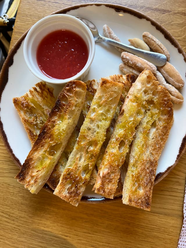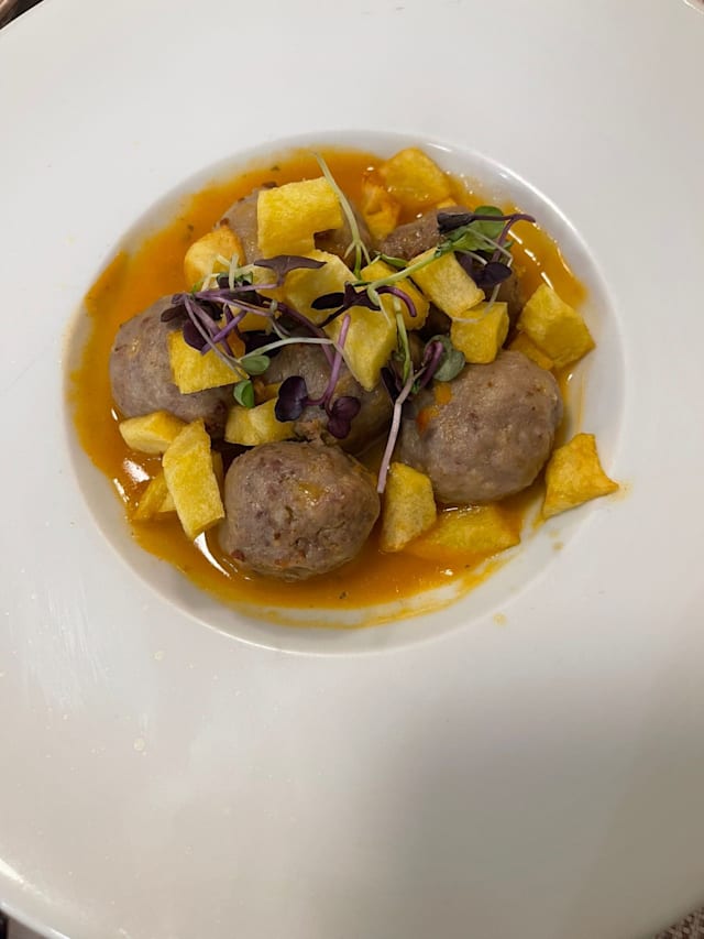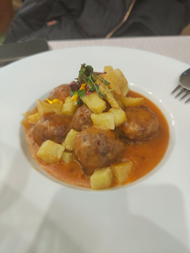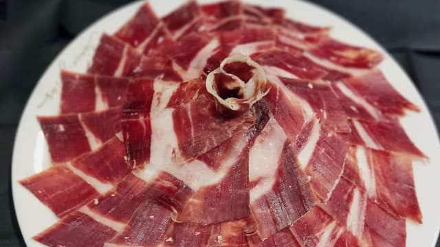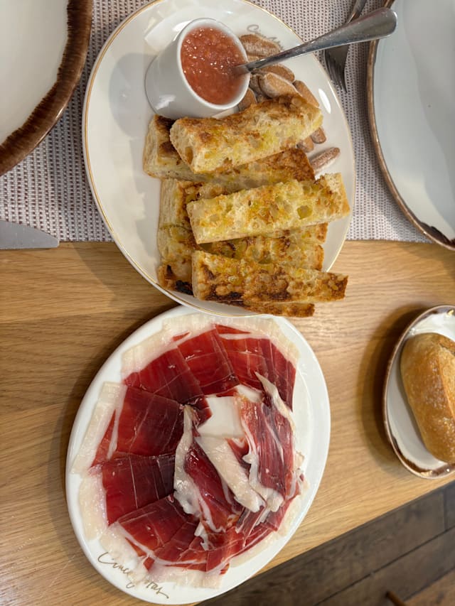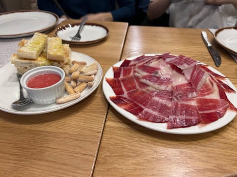 8.5/10The jamón iberico 100% bellota served on bread with olive oil and tomato compote were probably the best we've had in Madrid. Definitely worth coming for!