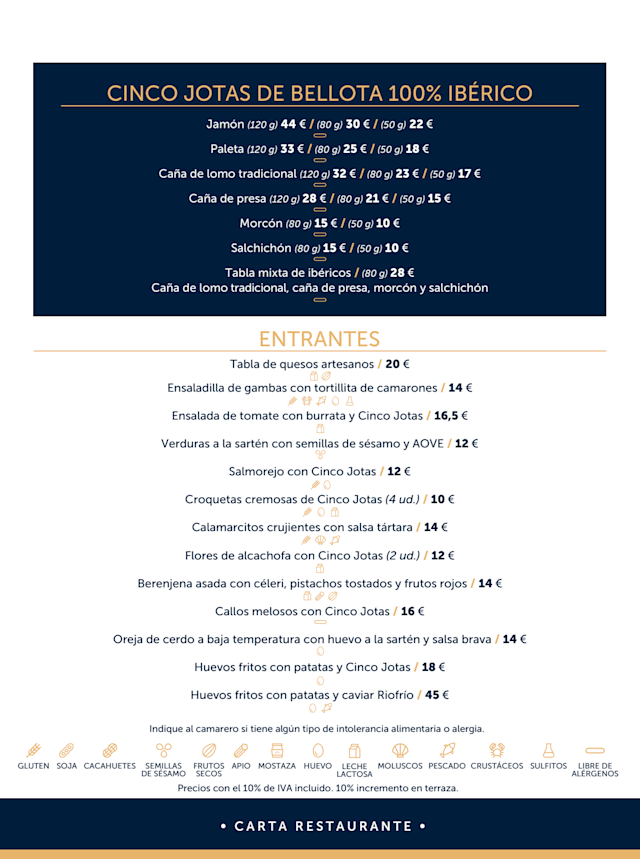 10/10If are staying in Madrid around C. Padre Damian. you must try Cinco Jotas. Meat, fish all of it! It's excellent!!