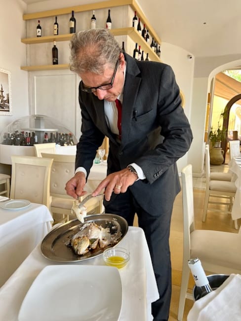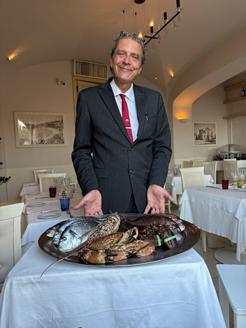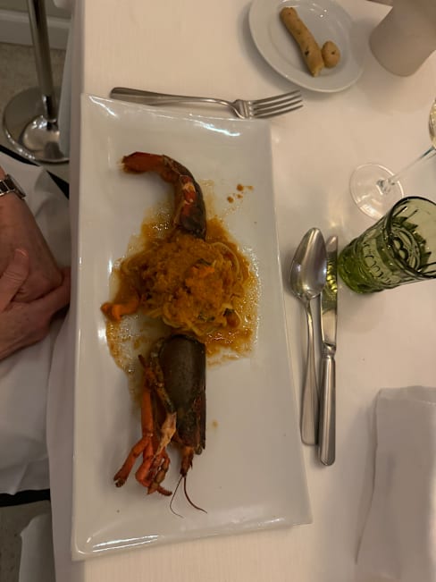6.5/10The octopus appetizer was well prepared, but bland. The pasta in the spaghetti and lobster Promi was overcooked and the lobster and tomato sauce was undistinguished. The sea bream and sea bass filet dishes were outstanding. I would recommend that anyone going to this restaurant stick to the fish dishes which are their specialty. The service was excellent and the location above the town square is outstanding.