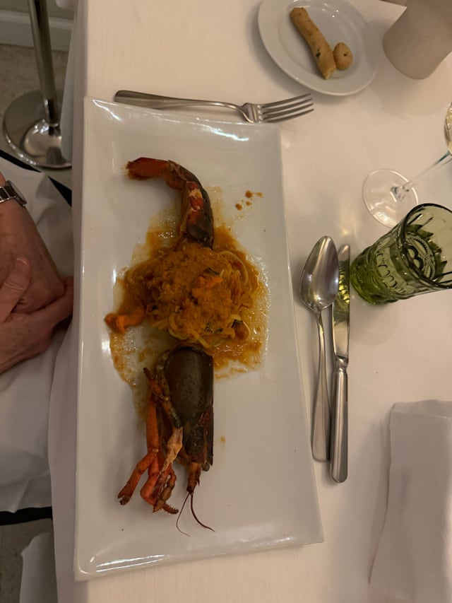 5.5/10We had three different dishes, two were specials and they were terrible. And unfortunately we had ordered 2 of each to feed the six of us.. The pasta with crab had no discernible crab and was terribly fishy. The pasta with lobster was also extremely fishy tasting. The other dish, sea bass, was very good. The waiter took our still full plates, asked if something was wrong which we told him it was, shrugged his shoulders and left. Didn't seem to care that we were unhappy.
