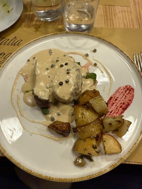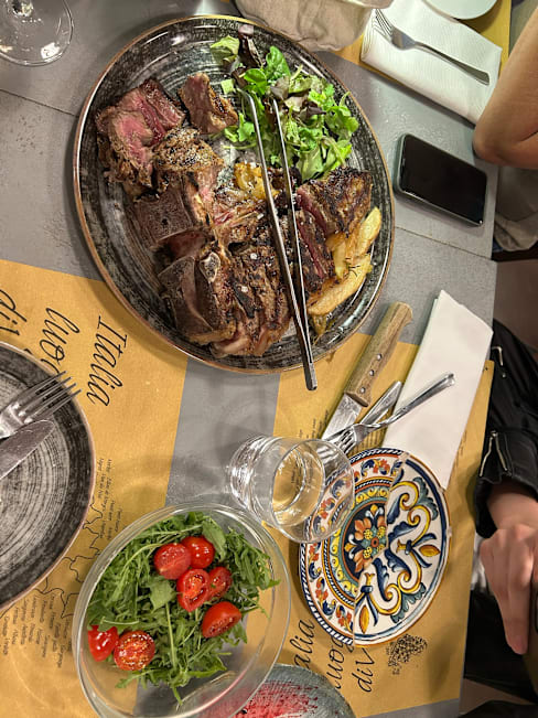 10/10We had the bistecca a la fiorentina and it was DELICIOUS. The staff were very friendly and helpful. We loved the atmosphere of the place and the area where it's located. Highly recommend it