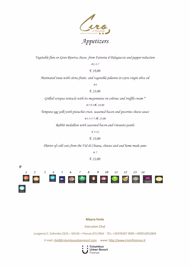 Ciro in florence tasting menu€76 per guest
