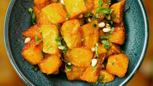 Fried potatoes, cilantro, garlic, fresh chilies, lemon and extra virgin olive oil