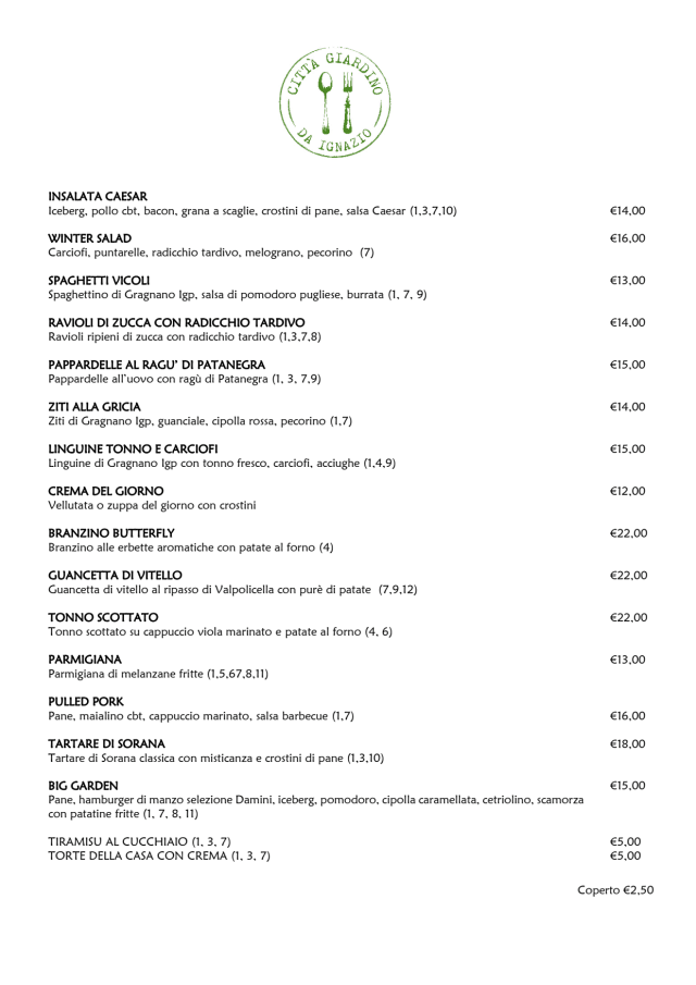 Città Giardino da Ignazio is identified as offering italian cuisine.