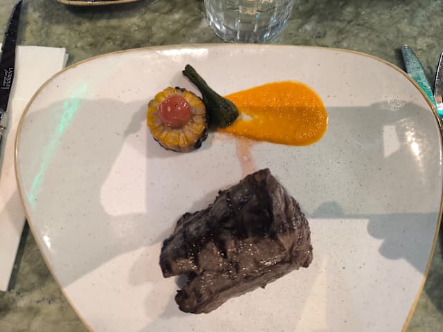 Tranches de novilho , gnocchis de batata , cogumelos e finalizado com molho de mascarpone trufado