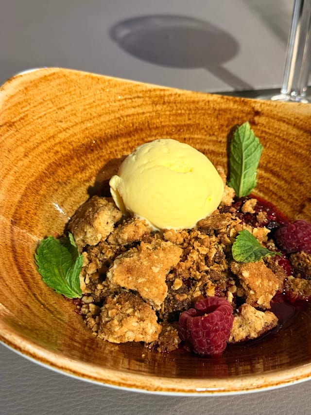 Lombinhos de borrego com crosta de frutos secos e mostarda acompanhado com purê de batata-doce, brócolos bimi e molho de hortelã