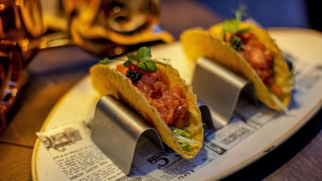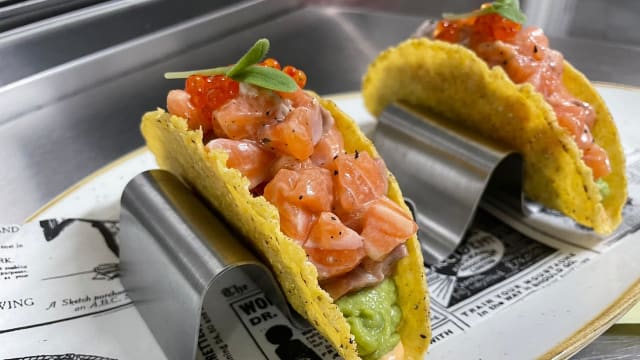 Soft taco de Novilho, chunky salsa , puré de abacate e finalizado com uma salada de couve roxa, cebola e Ananás (2Und)
