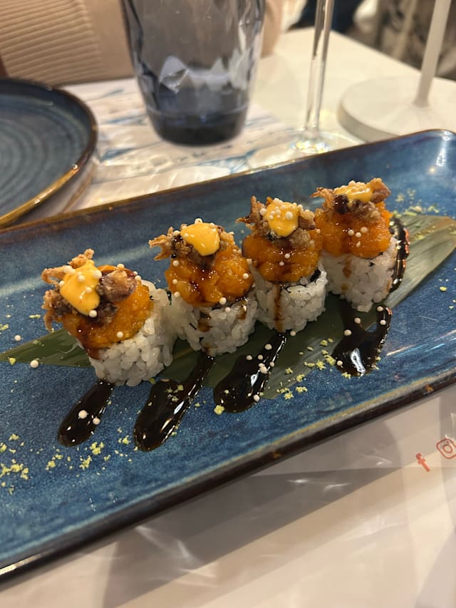 6.5/10Food was delicious but unfortunately the service was lacking in every aspect. Staff was lacking in hospitality and seemed lost. I ordered a glass of wine and my husband ordered a beer, he received his beer right but I only got my wine more than halfway through our mean. Asked for spicy mayo for my sushi and had to wait almost 20 minutes before I got it, at which point my husband had almost finished his meal. This lack in service took away from the experience.
