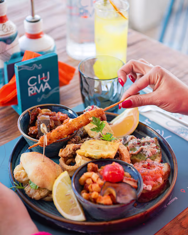 - Express pasta, swordish bon bon, Assorted bruschettas, fried fish