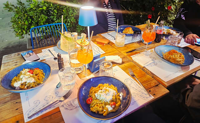 8.5/10We booked this restaurant for our last meal in Palermo as reviews were good , food was good and setting was nice but service was poor . We ordered two starters two mains wine and water one starter came out very nice octopus was waiting for second still waiting and for water and olives still waiting by this time we eat the octopus nearly ten minutes pasted still nothing I had to ask were the other was and the water .Couple minutes later the second starter came out with the main meal not very good and the water for the table . Food was good but got to stop trying to get so many people in and begin over busy .