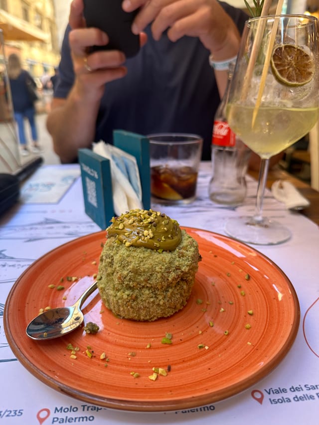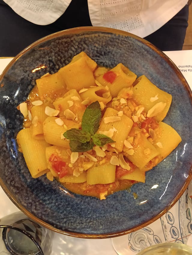4.5/10It's just another tourist trap. The food wasn't good at all. The pistachio pesto was so pale, spaghetti overcooked (maybe it was made for people without teeth). The service was good though. I believe this place has good rates because they offer a shot of limoncello once people write reviews.