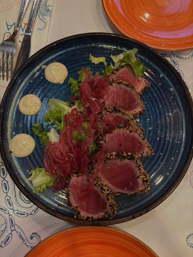 5/10We were very disappointed with the food…my wife’s swordfish salad was a soggy mess of limp lettuce swimming in dressing that obscured the other items included in the bowl. My mixed assortment of fried seafood was greasy and average at best. On the positive side, My daughter;s secundo, (Japanese-style tuna), a bruschetta antipasto with seafood credo and polio credo were very nice.