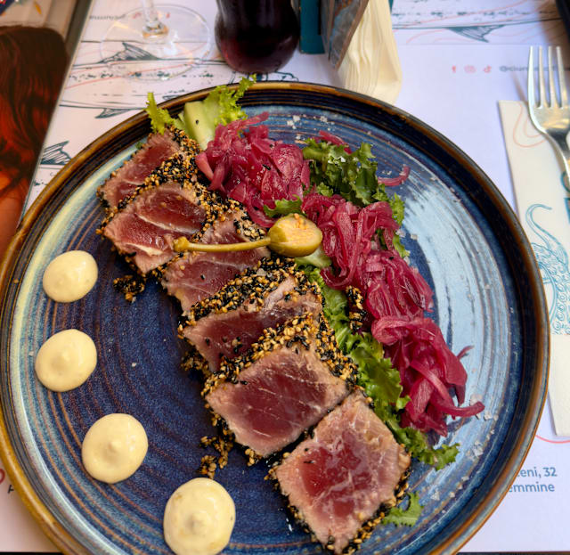 8/10Ciurma - Officina Del Pesce is a great spot for seafood lovers! The quality of the ingredients really shines — everything tasted super fresh, especially the crudo and the seafood pasta. You can tell a lot of care goes into the preparation and presentation of each dish. The atmosphere is relaxed but stylish, perfect for a nice evening out. Service was friendly and helpful, although it was a bit slow at times, which is the only reason I'm giving it 4 instead of 5 stars. Overall, a very enjoyable experience and definitely worth a visit if you're in the mood for well-executed, modern seafood dishes. I'd happily come back to try more from the menu!