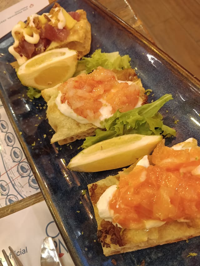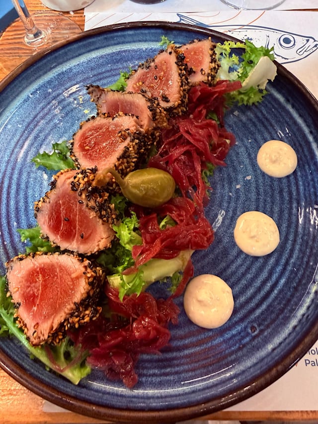 6/10This was recommended to us for our anniversary, but immediately we could see it was a bit of a tourist trap. The food was interesting, but expensive for what it was. My "mixed fried fish " only had 1 x 40mm piece of fish and the rest was all squid and octopus. The wine was unfamiliar, but local ones were €45 a bottle, so we had a €25 one that probably cost €5 in the supermarket. It's a very busy area and we felt rushed to vacate the table for others in only 45 minutes.