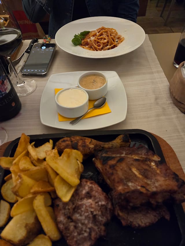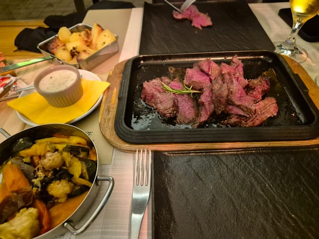 3/10The food was very late to arrive (more than 1 hr). We ordered 2 different size pieces of steak, (they both turned up the same size), mine was tasty but grissley. we asked for additional drinks and butter that was forgotton - we only got these when reminding the staff when the food eventually arrived.. the roasted vegetables turned up after I'd already finished my meal. the staff seemed over whelmed despite the restaurant only being half full. I appreciate this might sound moany, and is probably one of the few times I've actually written a food review - but had really high expectations given the historical good reviews of this place, but this was a food low point on our otherwise great holiday to lake garda.