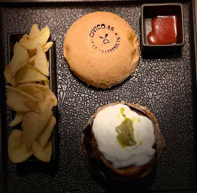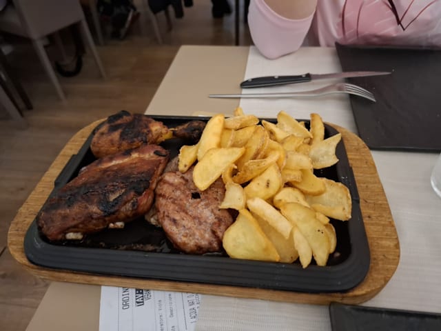 9.5/10We ate dinner here and thoroughly enjoyed the evening. There is outdoor seating available, but beware the mosquitoes! Not only was the food really good [astonishingly good chips!], but the waitress was great fun. You can go to the chilled cabinet and choose your dry aged steak, which is then cooked beautifully to order. If top quality steak isn't your thing, they have a good selection of gourmet burgers and pizza. The restaurant is a fair stroll from the centre of Sirmione, but it is well worth seeking it out.