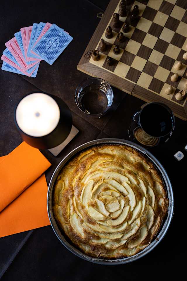 - Dolce di casa (farina, uova, burro, latte, zucchero, cannella, limone) tradizionale torta di mele, soffice e profumata