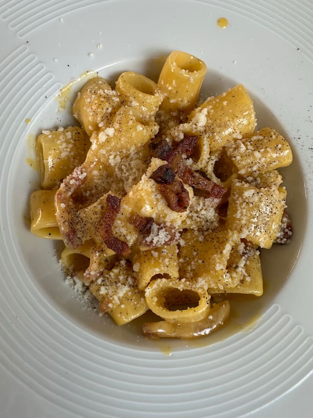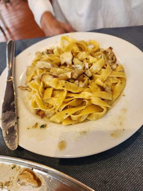 10/10This was our 1st time at this lovely restaurant and it was wonderful. The host greeted us with a glass of proseco and a warm greeting. He was very helpful explaining the menu and brought out a board with the specials of the day. We ordered the house red wine, a delicious egg and Truffle Bruscehtta, an amazing porcini linguini, and a wonderful cheesecake with caramel sauce. Everything was done to perfection. We will definitely make this a "must stop" anytime we're in Rome.