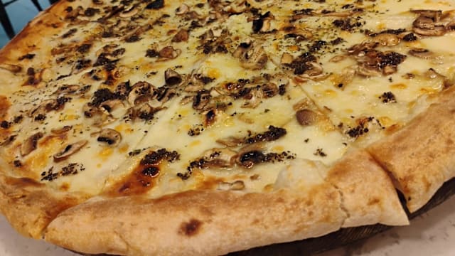 Basé blanco, mozzarella fiordilatte, champiñones y salsa de trufa