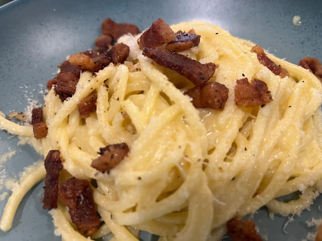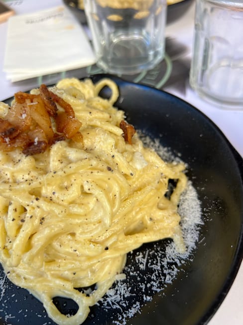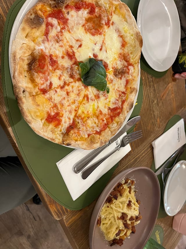 9/10We were 5 people, 3 adults and 2 kids, we have a good time. Food was very nice and pasta with sughetto (amatricina, cacio e pepe) very good. Pizza was amazing, frittura as well. We appreciated that the restaurant offered us some free foccacia as an excuse for longer waiting times.