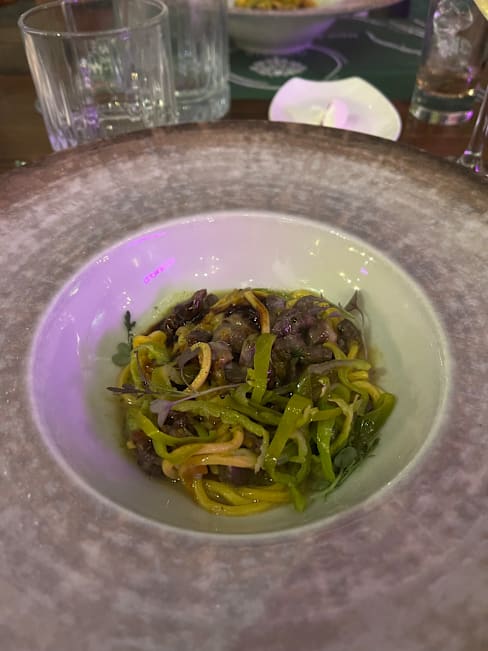 5/10The ambience and service was good. However, the food was terrible. It was very bland and the vegetables and fruits were not ripe. We ordered the short ribs as one of our mains and they were extremely fatty, but also very tough and barely edible. Overall, I was very disappointed and this has been the worst food i’ve had in Rome.