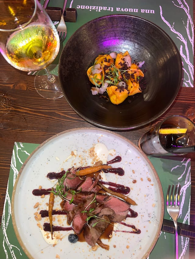 10/10Gorgeous restaurant and the food was beautifully presented and delicious. We shared the potato and fig dumplings which tasted so much better than they sound, the pasta carbonara (outstanding), and the sea bass (perfect). The tiramisu was simple yet delicious and served in an adorable clay pot. Our server helped us with our Italian and provided professional and personal service. This place is a real gem!