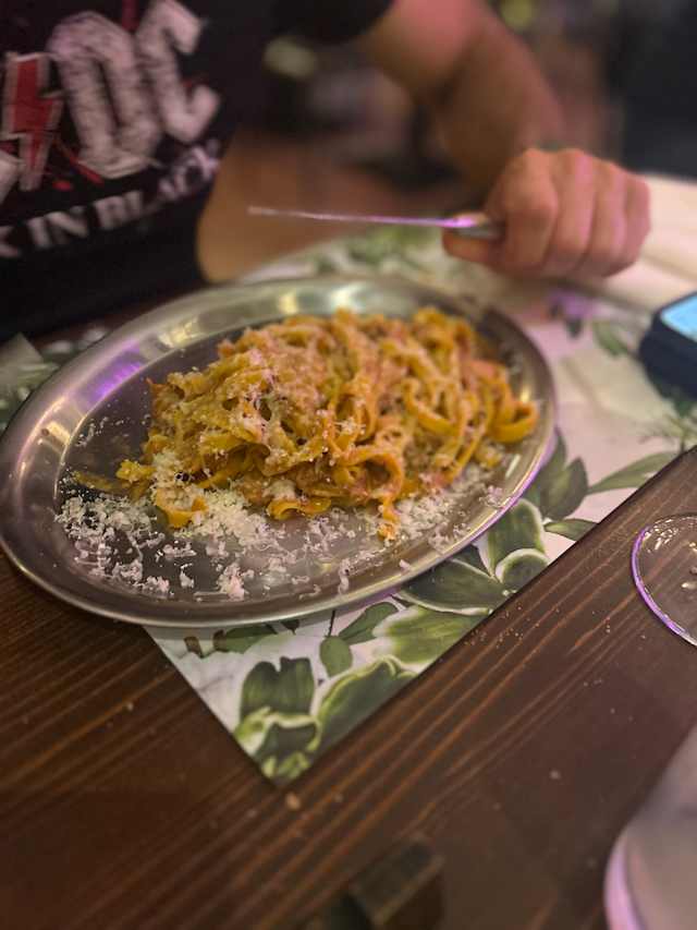 Gorgeous restaurant and the food was beautifully presented and delicious. We shared the potato and fig dumplings which tasted so much better than they sound, the pasta carbonara (outstanding), and the sea bass (perfect). The tiramisu was simple yet delicious and served in an adorable clay pot. Our server helped us with our Italian and provided professional and personal service. This place is a real gem!