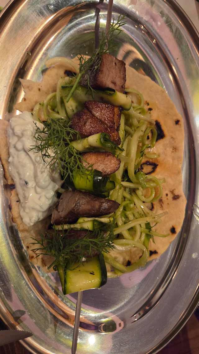 - Spiedone di agnello alla scapece, puntarelle e tzaziki