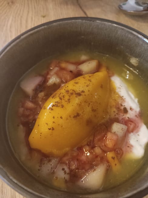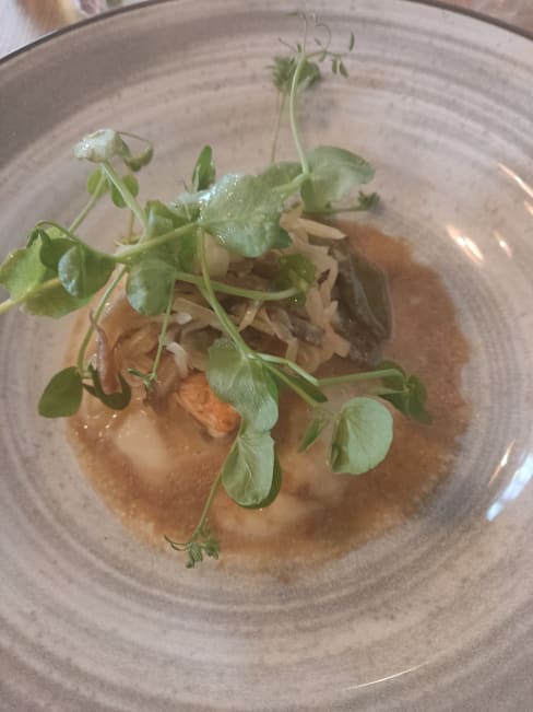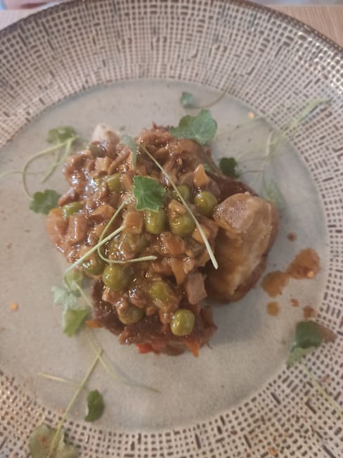 8.5/10We were the 1st to arrive at 7.30 so would have been nice to have had some gentle background music. Good choice of wines by the glass. Amuse bouche excellent- a juicy piece of chicken freshly fried in a light peppery batter. Starters were both delicious but fridge cold. I would have preferred room temp to bring out flavours even more. I chose the mackerel and my husband the pleurotte mushroom dish. Both main courses were even more tasty. A squid with peanut sauce or succulent lamb which melted in the mouth. All courses were made up with a wonderful variety of vegetables, veg purees and lightly spiced. There was not much choice on the menu but each was beautifully executed. We shared a poached pear dessert with delicate sorbet. All in all s delicious meal and we would definitely recommend.