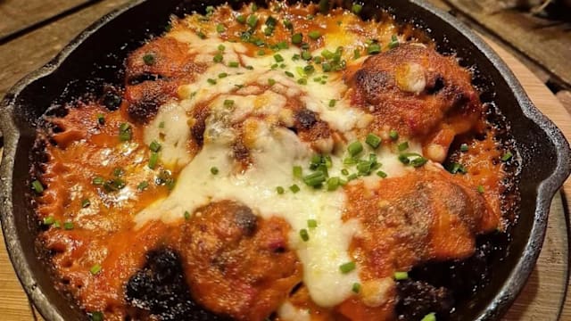 Gehaktballetjes, marinara, pecorino, parmezaan en verse kruiden