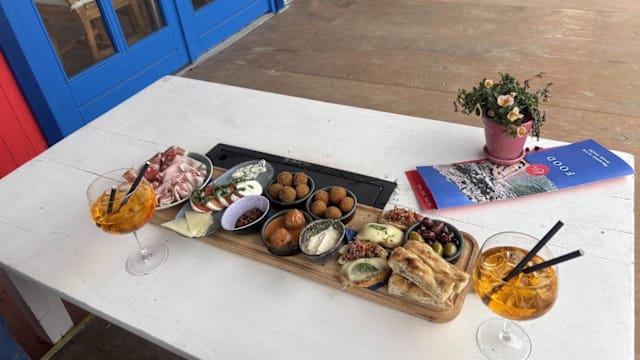 Linguine, guanciale, marinara, rode ui, rode peper, pecorino en parmezaan